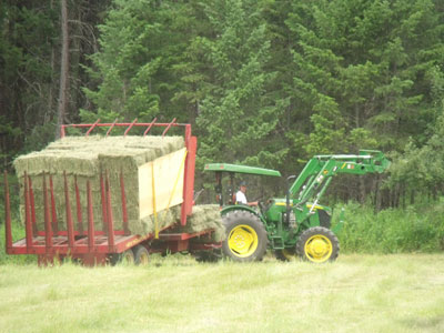 Producing small square hay bales for horse owners. Bales are 50-55lbs and sell for $11-12/bale. Future plans include raising cattle and chickens for the sale of organic beef and eggs at local markets.